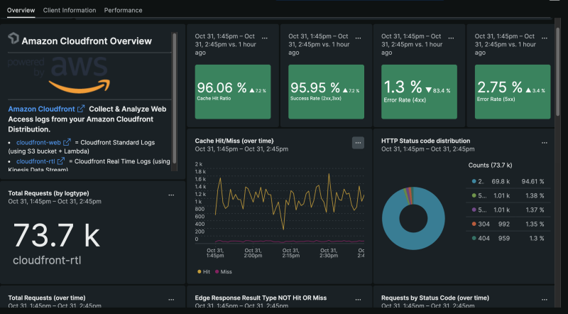 With the Amazon CloudFront quickstart, you can easily explore your data to resolve CDN-related issues faster in New Relic with a pre-built dashboard that visualizes CDN performance and client information.
