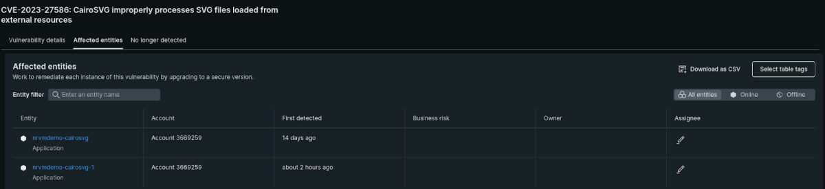 Because New Relic Security RX is looking at what's running in memory, not just what appears in a repo, it's able to determine the results in production.