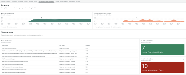 Magento Business Insights quickstart contains 1 dashboard. These interactive visualizations let you easily explore your data, understand context, and resolve problems faster.