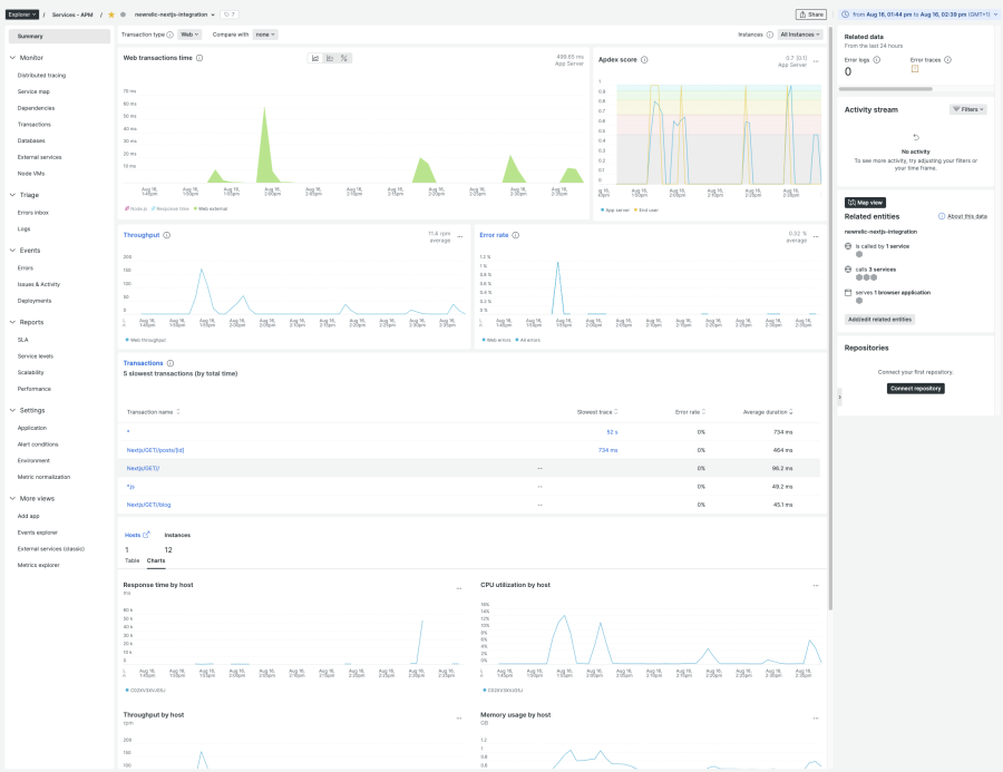 The integration with the New Relic Node.js agent offers all the agent's capabilities, enhancing performance monitoring and error tracking in Next.js applications.