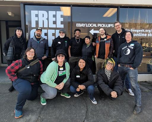 In Portland, employees spent the day at Free Geek, an organization with a goal to repurpose technology and discover sustainable solutions while providing educational resources, helping in various departments.