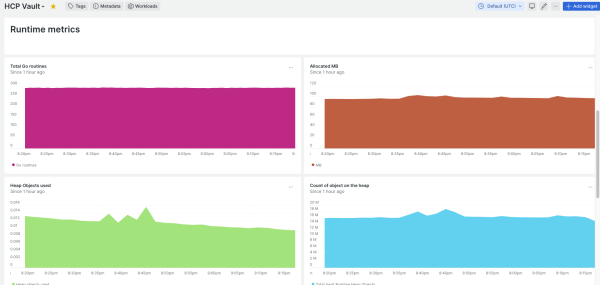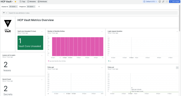 HCP Vault quickstart contains 1 dashboard. These interactive visualizations let you easily explore your data, understand context, and resolve problems faster.