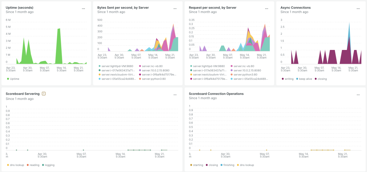 Our Apache quickstart include out-of-the-box dashboards and alerts, including data such as:
