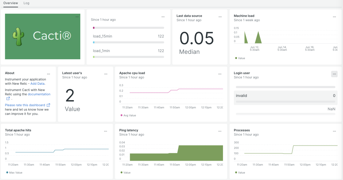 Cacti quickstart contains 1 dashboard. These interactive visualizations let you easily explore your data, understand context, and resolve problems faster.