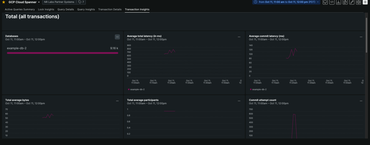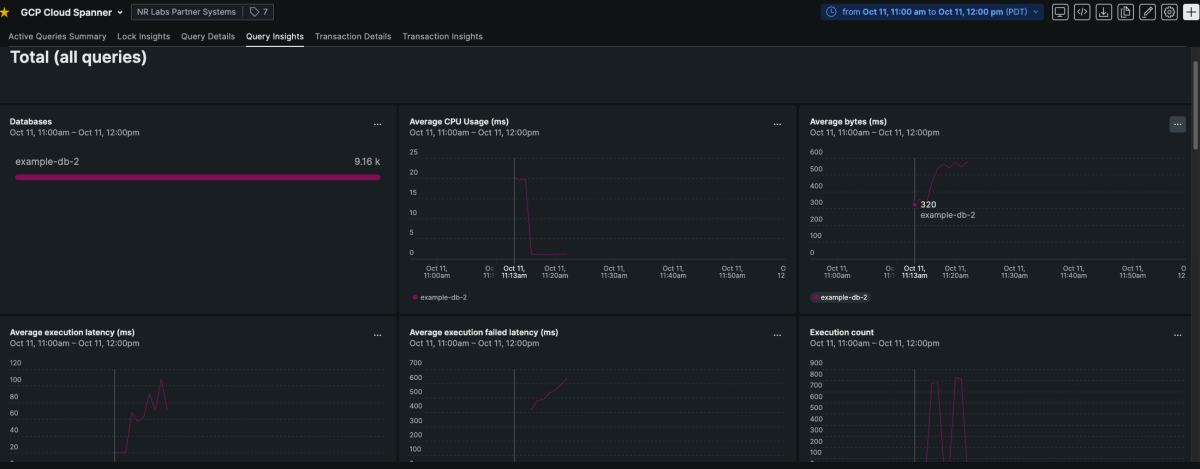 This integration gives you visibility into key metrics on your Spanner isntance. The metrics included give you deep insights into your Reads, queries, and transactions occuring in your cloud spanner instance.
