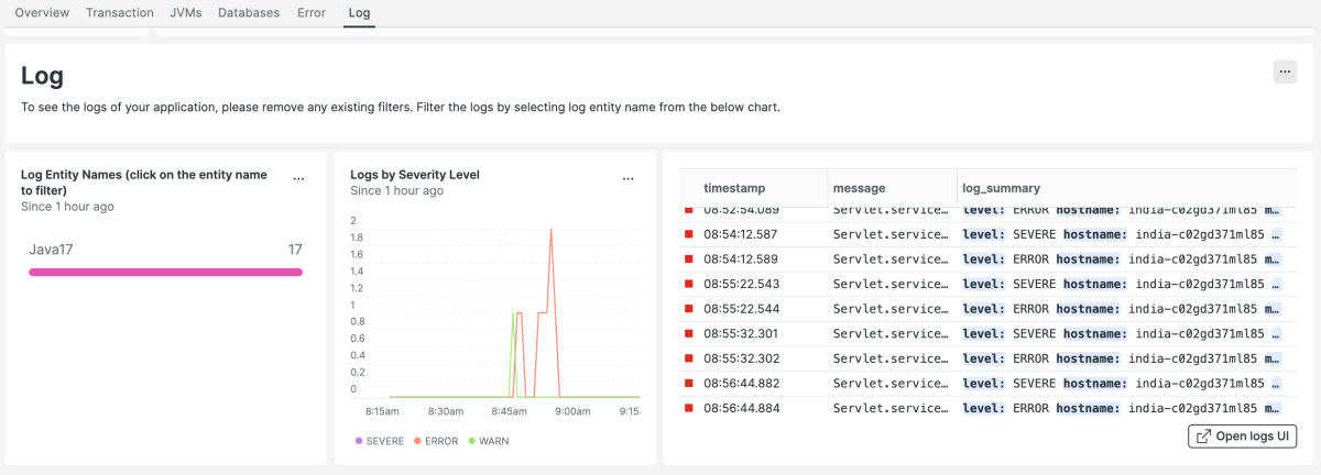 OC4J quickstart contains 1 dashboard. These interactive visualizations let you easily explore your data, understand context, and resolve problems faster.