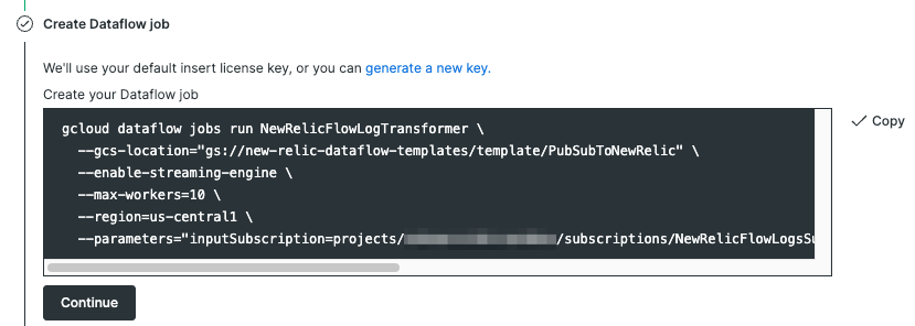 commandを実行し、Dataflow jobを作成します。