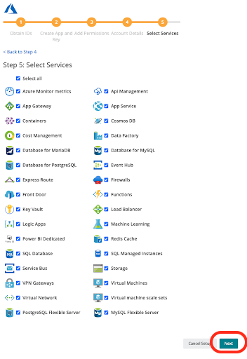 (5)Azureからデータを取得したいサービスを選択し「Next」をクリック