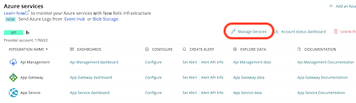 (1)前項までの手順でAzureとの連携が済んでいる状態で「Manage Services」をクリック