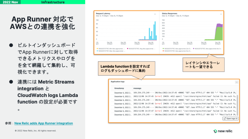今回は2022年11月分のアップデートを抜粋してご紹介します。詳細やその他のアップデートは、New Relic アップデート紹介 (2022年11月分) のスライドも是非ご覧ください。