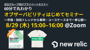 New Relicは、国内市場シェアNo.1**を獲得しているオブザーバビリティ・プラットフォームベンダーです。来る2024年8月29日、日立ソリューションズとの販促協業の一環として、日立グループ向けプライベートセミナー 60分で丸わかり「オブザーバビリティはじめてセミナー」〜市場・技術トレンドから事例・ユースケースまで一挙公開〜を開催する運びとなりました。