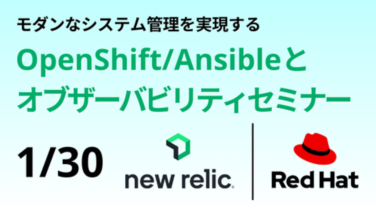 昨今、サービス基盤を構築するための要素や所在の選択肢が広がっており、システム運用のモダン化に取り組まない場合の運用負荷は増加する一方です。このトレンドを打破し、より自動化され効率化されたシステム運用を実現する手段として本セミナーではRed Hat OpenShiftやRed Hat AnsibleといったRed Hatが提供するテクノロジーと、New Relicが提供するオブザーバビリティ・プラットフォームをご紹介。それらの活用例、さらにAnsibleとNew Relicの連携による利点についてご紹介します。仮想化基盤の乗り換え需要で注目されているOpenShift Virtualizationも含め、最新のシステム基盤・運用についての深い理解と実践的な知識を得られる機会ですので、ぜひ奮ってご参加ください。