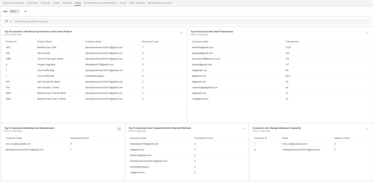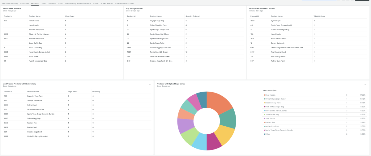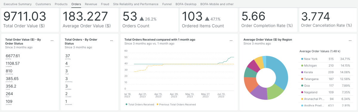 - Dashboards (Executive summary, Customers, Orders, Funnel and more)