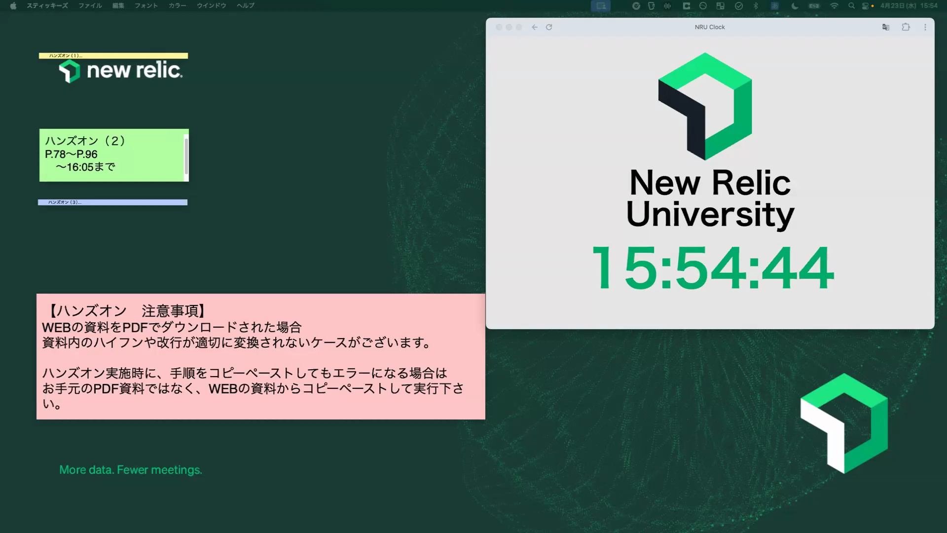 New Relic のコアとなる New Relic APM、New Relic Infrastructure、そして Alert と Dashboard 作成についてハンズオントレーニングで学びます。