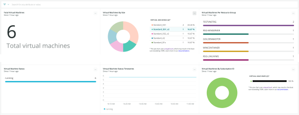 Azure VMs quickstart contains 1 dashboard. These interactive visualizations let you easily explore your data, understand context, and resolve problems faster.