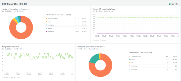 Google Cloud SQL quickstart contains 1 dashboard. These interactive visualizations let you easily explore your data, understand context, and resolve problems faster.