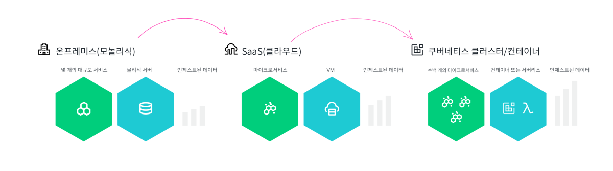 왜 텔레메트리 데이터는 그렇게 빨리 증가할까요? 클라우드 마이그레이션과 디지털 트랜스포메이션의 가속화로 인해 옵저버빌리티에서 텔레메트리 데이터가 가장 큰 가변 비용이 되었습니다. 온프레미스에서 클라우드로, 모놀리식에서 마이크로서비스 아키텍처로 이동하면서, 몇 개의 대규모 서비스가 아닌 수백 개의 소규모 서비스를 사용하게 되었기 때문입니다.