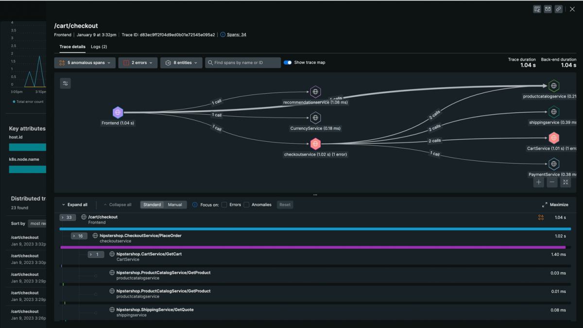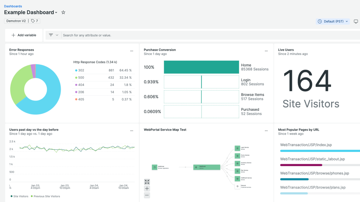 Mais de 50 funcionalidades, insights acionáveis. Observabilidade inteligente em todos os lugares.