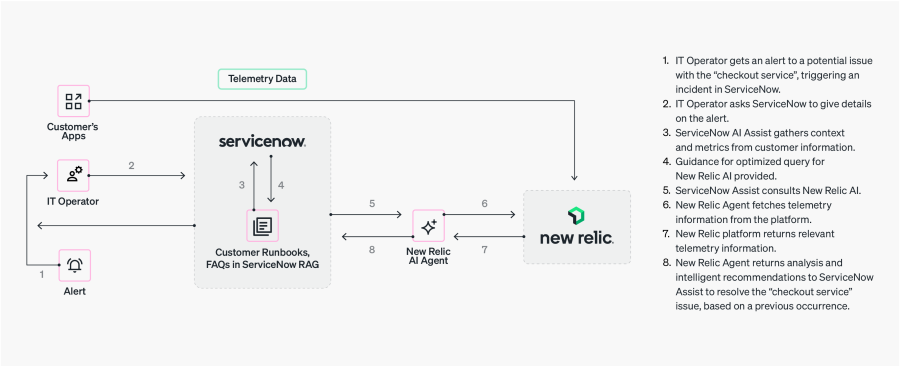 Building on its open-agent ecosystem, New Relic offers a powerful agentic AI integration that goes beyond simple API data pulls to provide deep, mission-critical insights and intelligent recommendations to the tools and platforms where ServiceNow customers already work. Enterprises embracing New Relic and ServiceNow can automate enterprise workflows, maximize business uptime, and minimize revenue loss.